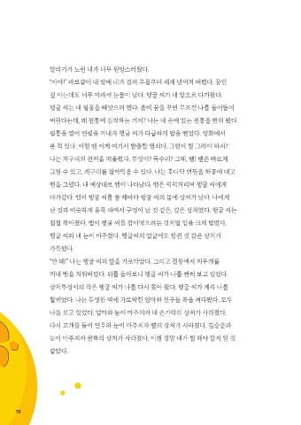 걸 아는데도 너무 아파서 눈물이 났다. 행굴 씨가 내 앞으로 다가왔다.