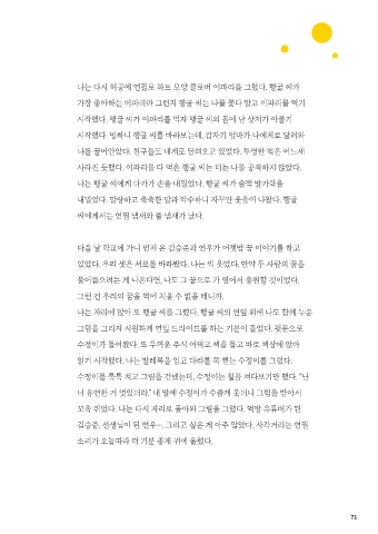 너 유연한 거 멋있더라.” 내 말에 수정이가 수줍게 웃더니 그림을 받아서