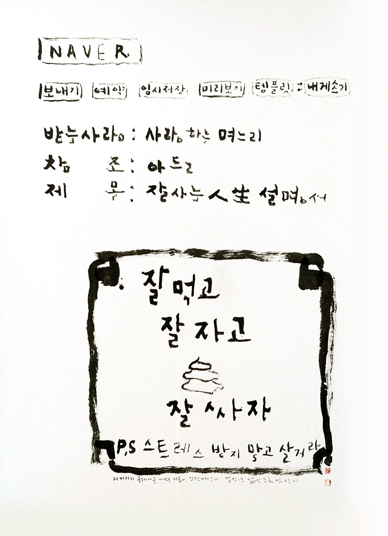 지금 연구실 내 자리 앞에는 한 제자가 열심히 학이시습(學而時習)을 실천하고 있다. 학이시습이란 『논어』 제1장에 나오는 문장 중 한 구절로써 ‘배우고 그것을 무시로 익히면 또한 기쁘지 아니한가.’라는 말이다. 우리가 일상에서 사용하는 ‘학습(學習)’은 ‘학이시습’의 줄임말이다. 그는 대학을 마치고 병역의 의무를 다하는 중 틈틈이 서예를 익히고 있다. 열심히 법첩(法帖)을 보고 서예(書藝)를 학습하며 본인만의 것으로 체득(體得)하기 위해 부단히 노력하고 있다. 서예는 크게 세 가지로 공부의 단계를 나눌 수 있는데 평정(平正) – 험절(險絶) – 평정이다. 처음의 평정은 아무것도 모를 때의 순수함 그 자체를 말한다. 즉 무지(無智)의 단계라고 말할 수 있다. 학습을 통해 조금씩 몸에 체득되고 자신감이 붙을 때쯤 험절의 시기가 나타난다. 이 시기는 인간으로 말하자면 사춘기라고 말할 수 있는데 평정을 통하여 다져놓은 체득된 습(習)을 가지고 오만 잔기술을 부리는 시기이다.