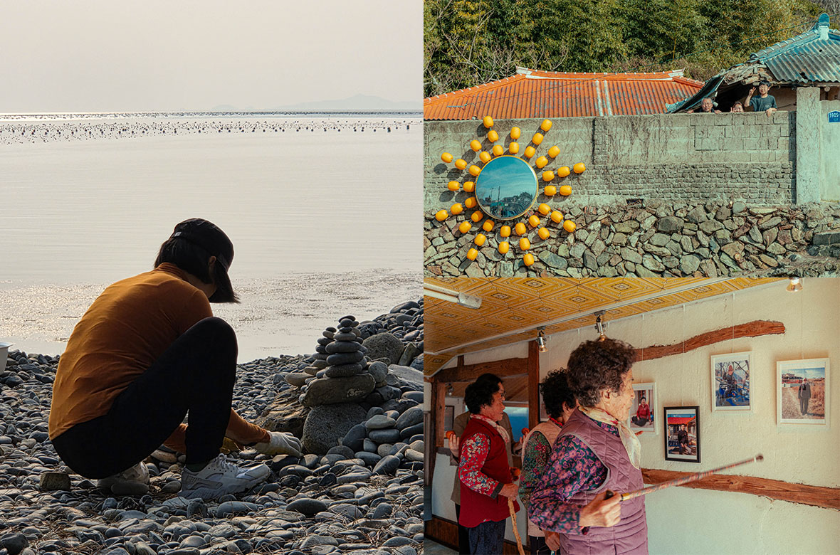 드디어 2026년 3월 28일, 채비하고 있는 작품 일부와 작품 계획을 마을사람들과 함께 나누는 ‘염포마을 예술캠프 쇼케이스’를 열었다. 마을사진 프로젝트를 전시한 마을갤러리 개관행사가 있었고, 김희진+박성욱의 마을벽면 설치 작업 ‘바다해바라기’, 윤은숙+이루의 염포해수욕장 몽돌조형 작업 ‘바다찜질’을 선보일 수 있었다. 마을사람들이 마련한 제철 음식을 마을 강당에서 함께 나누며 2026년 9월에 설치할 작품 계획을 미리 보는 자리도 마련하였다.