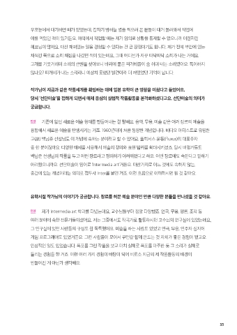 만영 제가 Intermedia art 학과를 다녔는데요, 교수님들부터 정말 다양했죠. 연극, 무용, 평론, 조각 등