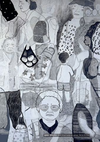 임희정 <걸어간다> 2023, mixed media on canvas, 130.3x193.9cm