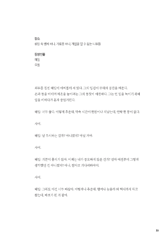 외투를 걸친 해일이 애처롭게 서 있다. 그의 입김이 무대의 공간을 채운다.
