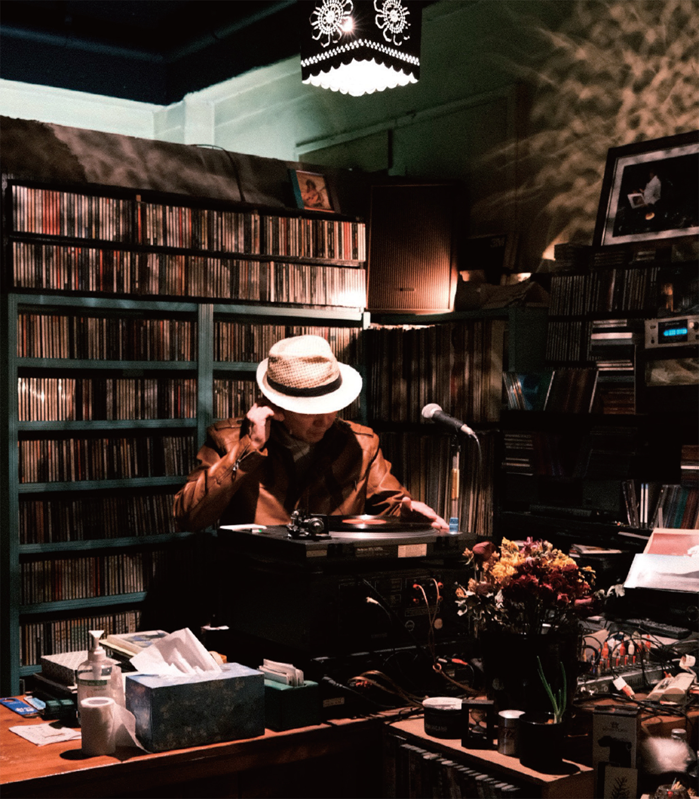 뒤편으론 수많은 LP와 CD 그리고 스피커가 반긴다. 안쪽으로 시선을 옮기면, 옛 뮤지션들이 나오는 TV와 무대 그리고 기타가 자리하고 있다. 가게에서 들리는 Carpenters의 ‘TOP OF THE WORLD’ 노래는 1970년대의 음악감상실에 들어온 느낌을 주었다. 공간을 둘러보며 ‘무아’와 ‘음악에’ 공간에 대한 이야기를 해주실 수 있는지 물었고, 차 한 잔을 내주시며 이야기가 시작되었다.