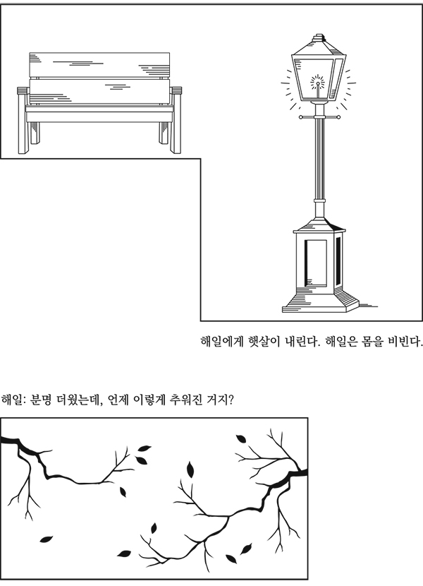 해일: 그래도 이건 너무 하잖아. 이렇게나 추운데. 행여나 늦을까 봐 택시까지 타고 왔는데, 바보가 된 거 같아.