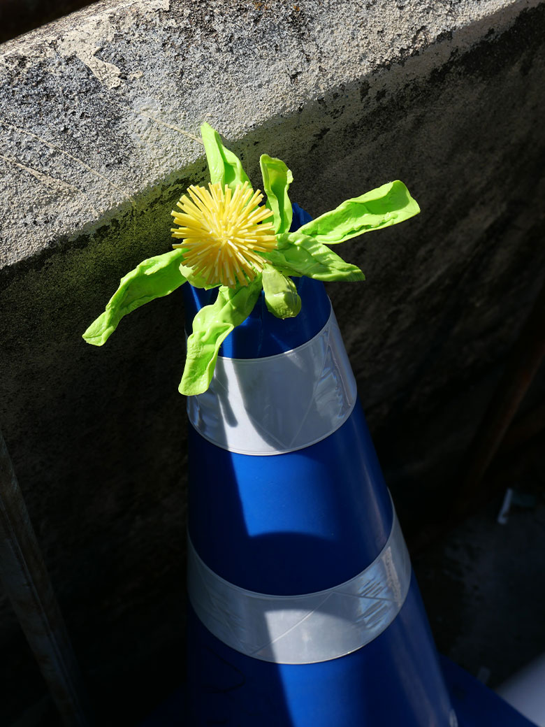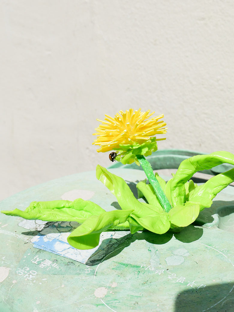 최근 식목일을 기념해 병뚜껑을 녹여 실물크기의 민들레를 만들어 길거리 사물 위에 올려두고 촬영한 적이 있습니다. 작업을 하고 있을 때 사람들이 실제