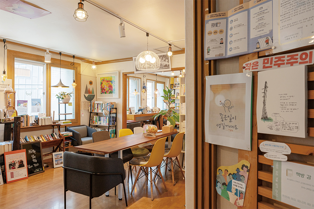 책방 감에는 다락방 같은 공간이 있다. 주로 대관 형식으로 이용되는 이 공간은 강좌, 세미나 등이 열리거나 사무실 없는 1인 활동가들의 작업 공간이 되기도 하고 인근 초등학교 학생들의 놀이터가 되기도 한다. 이렇듯 책방 감은 책방 이상의 역할을 하고 있다. 서 대표는 누구나 편하게 오가며 자연스럽게 소통하고 커뮤니티를 형성할 수 있다는 게 동네 책방의 묘미라고 한다.