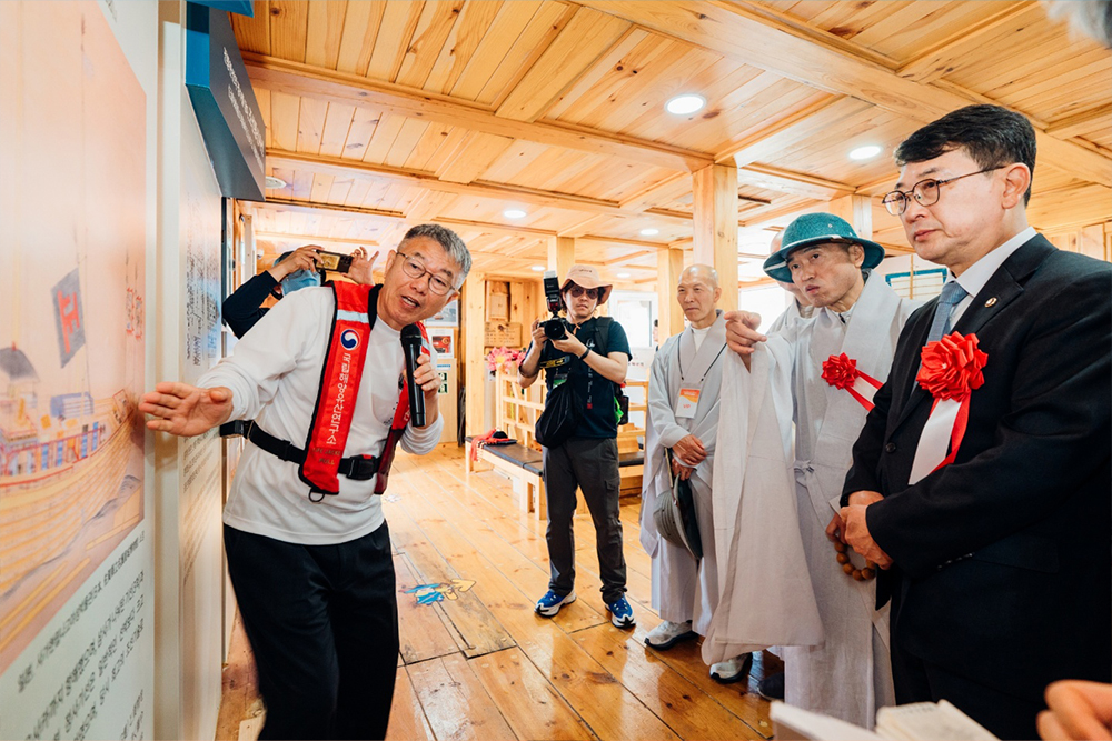 전통 한선을 복원해 운항하는 일은 현대 선박과는 전혀 다른 도전이에요. 요즘 선박은 대부분 기계식 추진체계를 갖추고 있지만, 통신사선은 구조적으로 그와 잘 맞지 않는 점이 많습니다. 무엇보다 선체가 가볍기 때문에 바람, 파도, 조류의 영향을 훨씬 많이 받아요. 그래서 조정 방식도 완전히 다르고, 확실히 더 어렵죠.
